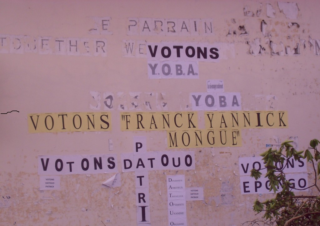 La date du 30 janvier 2013 avait été retenue comme celle des élections. Depuis le retour des congés de noël, l’université était en pleine campagne. Des slogans de campagnes allant de Neo-manager, les Démocrates, l’Emergence… la course à l’occupation des chaises des AE a battu son plein. C’est ainsi que le président et toute sa liste ont utilisé tous les moyens pour effectuer une communication efficace. Nous avons identifié: le tour des salles de classes pour présenter les programmes, les affiches et flyers, les SMS et même des tee-shirts. Malheureusement internet n’est pas encore utilisé comme moyen de communication. Surtout il nous a été révélé qu’aucune dotation budgétaire n’est faite par l’administration pour effectuer la campagne.