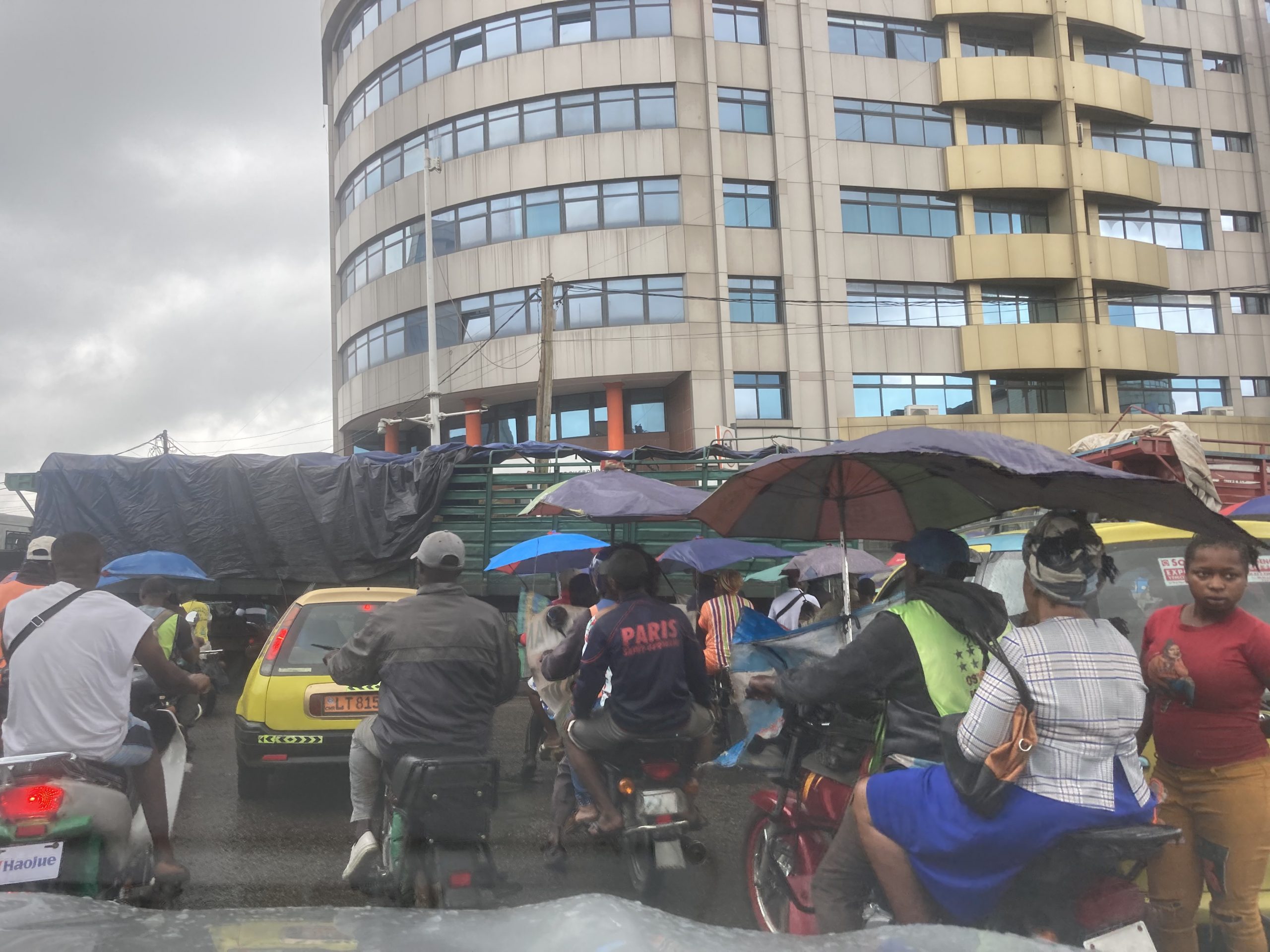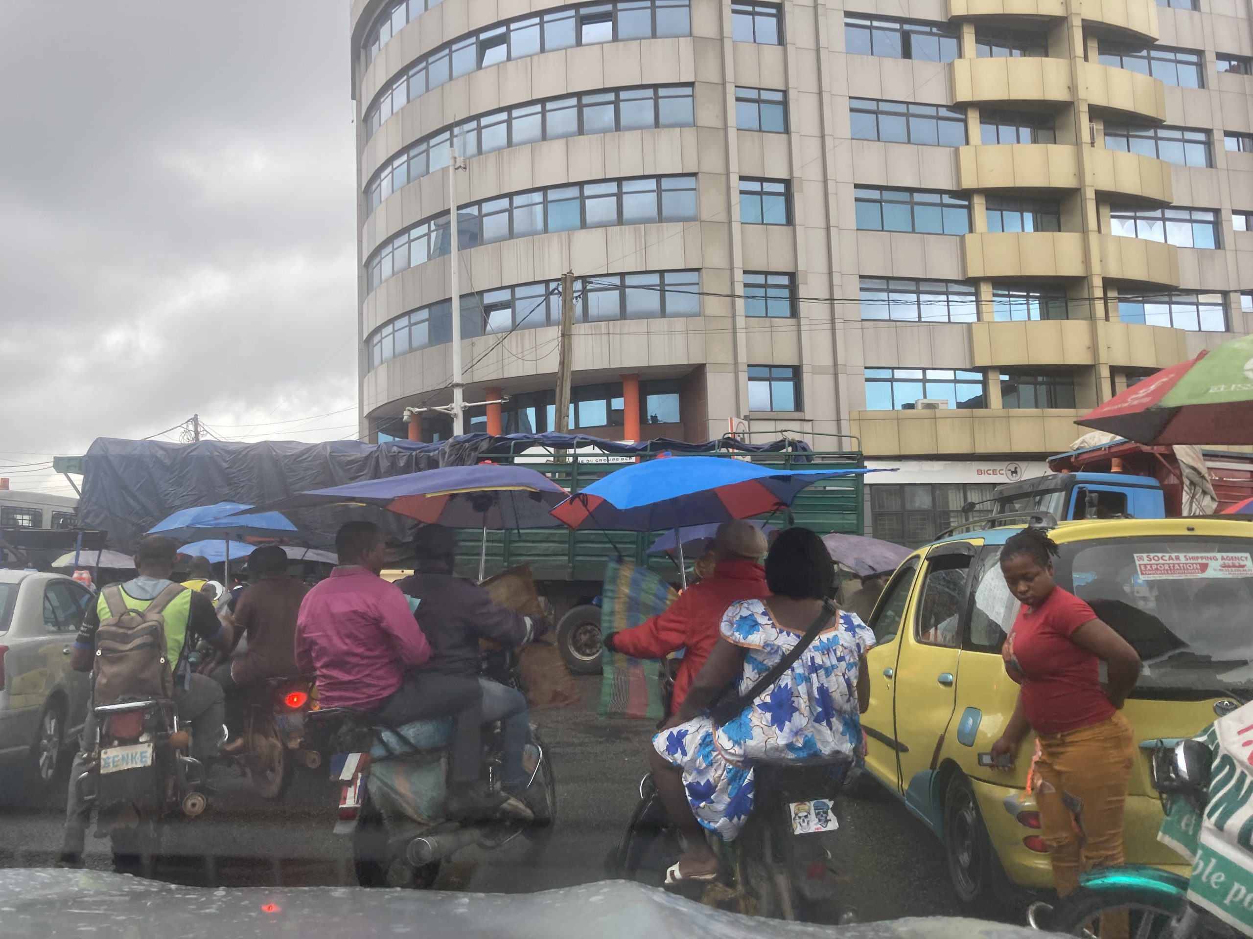 Douala et son humidité. Beaucoup de pollution : visuelle, auditive et de l’odorat : beaucoup d’embouteillages, beaucoup de motos taxis et de conduites anarchiques et très dangereuses. Beaucoup de bars et beaucoup de nuisances sonores très fortes toute la journée et toute la nuit!