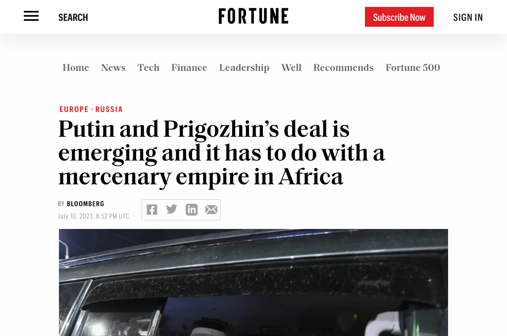 Résumé : “L’accord entre Poutine et Prigozhin prend forme et concerne un empire mercenaire en Afrique – Fortune”.