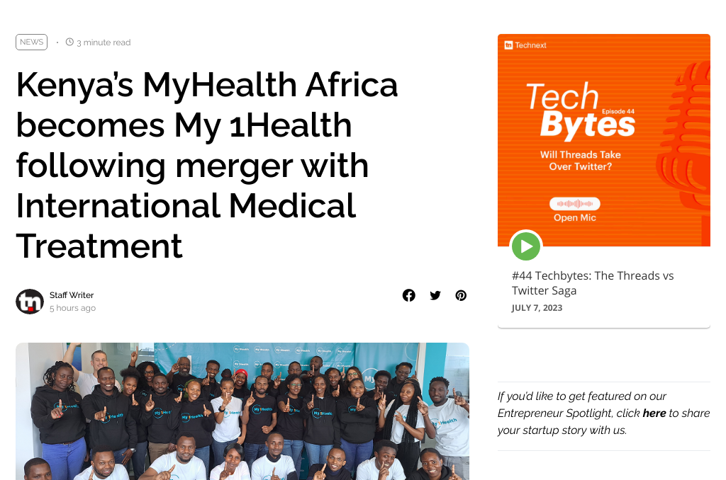 Le fournisseur kenyan de soins de santé numériques, MyHealth Africa, a fusionné avec International Medical Treatment Limited pour créer une nouvelle plateforme appelée My 1Health. L’objectif de cette fusion est de s’étendre à d’autres marchés et d’améliorer l’accès des patients aux hôpitaux et aux professionnels de la santé locaux et internationaux. MyHealth Africa avait déjà exprimé son désir d’expansion mondiale et la fusion avec IMT, qui opère dans le secteur du tourisme médical, contribuera à la réalisation de cet objectif. La nouvelle plateforme, My 1Health, aura accès aux hôpitaux partenaires d’IMT dans différents pays, ce qui est crucial pour son objectif de devenir une plateforme mondiale reliant les patients à des services de soins de santé spécialisés dans le monde entier. Le PDG de My 1Health a déclaré que cette fusion changeait la donne, car elle permettra aux individus de trouver les services de santé adéquats, quel que soit l’endroit où ils se trouvent. L’entreprise a également annoncé son intention de s’implanter en Éthiopie et au Sud-Soudan, et de poursuivre son expansion au Moyen-Orient et en Asie du Sud dans le courant de l’année. My 1Health a déjà aidé près de 35 000 patients à accéder à des services de santé spécialisés dans le monde entier. L’entreprise vise à transformer la manière dont les patients accèdent aux soins de santé spécialisés en s’appuyant sur des technologies de pointe et des partenariats stratégiques.