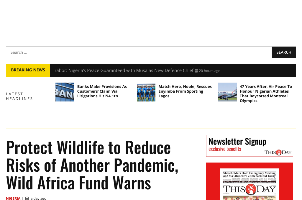 [THISDAY Newspapers] Le Fonds pour l’Afrique sauvage appelle à une action urgente pour protéger les espèces sauvages et prévenir de nouvelles pandémies