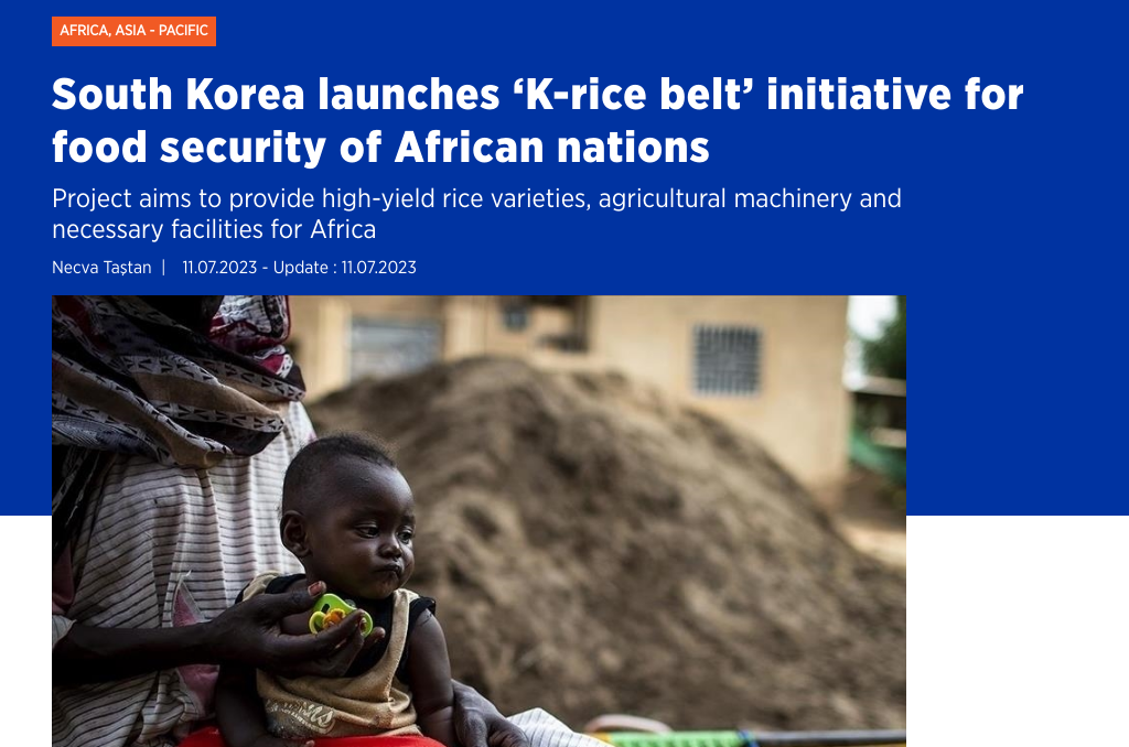 La Corée du Sud a lancé l’initiative “K-rice belt” en collaboration avec huit pays africains afin de garantir une sécurité alimentaire durable. Ce projet, qui s’inscrit dans le cadre de l’aide publique au développement de Séoul, vise à fournir à l’Afrique des variétés de riz à haut rendement, des machines agricoles et les installations nécessaires. L’initiative implique le partage de l’expertise et des technologies en matière de culture et de distribution.