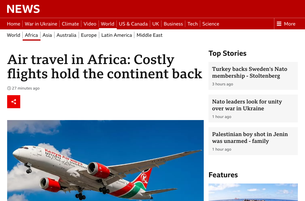 “Le transport aérien en Afrique : Les vols coûteux freinent le continent – BBC”