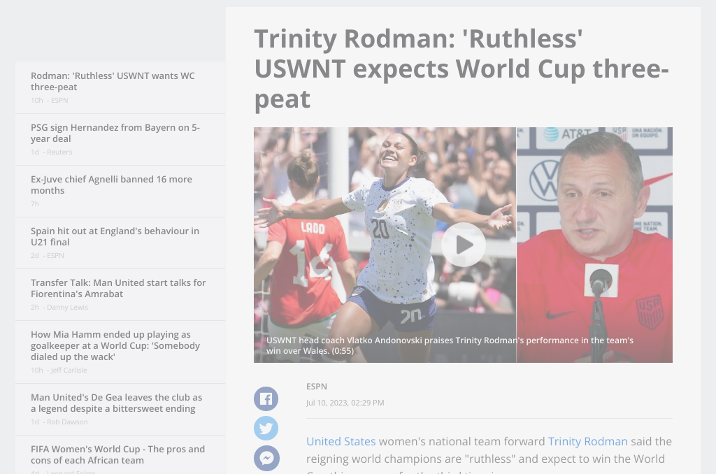 Dans une interview accordée à ESPN, Trinity Rodman, attaquante de l’équipe nationale féminine des États-Unis (USWNT), s’est montrée confiante dans la capacité de son équipe à remporter un troisième titre consécutif à la Coupe du monde. La jeune femme de 21 ans a marqué les deux buts lors de la récente victoire 2-0 de l’équipe sur le Pays de Galles en match amical. Rodman, qui participera à sa première Coupe du monde, a décrit l’USWNT comme “impitoyable” et a déclaré : “Je m’attends à ce que nous soyons l’équipe la plus impitoyable, que nous n’abandonnions jamais et que nous obtenions le titre”. Elle a insisté sur la détermination de l’équipe à remporter la médaille d’or et a souligné les liens particuliers qui unissent les membres de l’équipe actuelle. L’USWNT, championne en titre, affrontera les Pays-Bas, le Portugal et le Vietnam dans le groupe E du tournoi, qui débutera le 20 juillet.