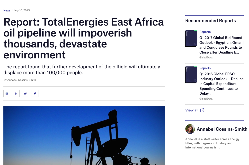 Rapport : L’oléoduc de TotalEnergies en Afrique de l’Est appauvrira les communautés locales et aggravera la crise climatique, selon une ONG