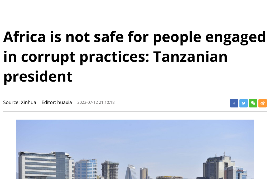 Dans un article intitulé “L’Afrique n’est pas sûre pour les personnes engagées dans des pratiques de corruption : Le président tanzanien Samia Suluhu Hassan a mis en garde contre les pratiques de corruption en Afrique dans un article intitulé “L’Afrique n’est pas un lieu sûr pour les personnes engagées dans des pratiques … – Xinhua”, publié par Xinhua. La présidente Hassan a souligné que l’Afrique n’est pas une cachette pour les individus corrompus et que s’engager dans des pratiques de corruption en Afrique revient à jouer avec le feu. Elle a également exprimé sa conviction que l’Afrique ne devrait pas être utilisée pour le blanchiment d’argent obtenu par la corruption. La présidente Hassan a fait ces remarques à Arusha, en Tanzanie, à l’occasion de la Journée africaine de lutte contre la corruption.