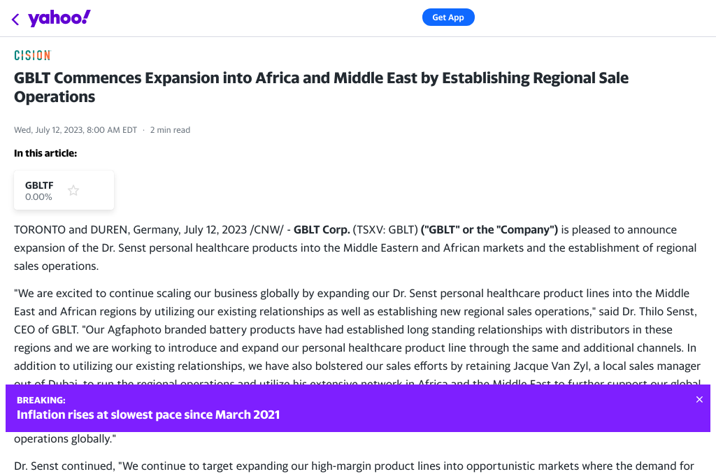 GBLT Corp, l’un des principaux fournisseurs de solutions de stockage mobile, de batteries et d’énergies renouvelables, a annoncé son expansion sur les marchés du Moyen-Orient et de l’Afrique, ainsi que la mise en place d’opérations de vente régionales. L’entreprise prévoit d’introduire ses gammes de produits de santé personnelle Dr. Senst dans ces régions, en utilisant les relations existantes et en établissant de nouvelles opérations de vente. Thilo Senst, PDG de GBLT, s’est réjoui de cette expansion et du potentiel de croissance de ces marchés. Il a indiqué que l’entreprise entretient des relations de longue date avec des distributeurs au Moyen-Orient et en Afrique grâce à ses produits de batterie de marque Agfaphoto, ce qui contribuera à l’introduction et à l’expansion de la gamme de produits de soins personnels. GBLT a également engagé Jacque Van Zyl en tant que directeur des ventes locales à Dubaï pour gérer les opérations régionales et utiliser son réseau en Afrique et au Moyen-Orient. Le Dr Senst a déclaré que cette expansion s’inscrivait dans la stratégie de GBLT visant à étendre la portée de ses produits en dehors des marchés de l’Union européenne. La société vise à cibler des marchés opportunistes où la demande pour ses produits de santé de haute qualité est élevée. GBLT Corp, par l’intermédiaire de sa société d’exploitation GBT GmbH, est connue pour ses solutions de stockage mobile, de batteries et d’énergie renouvelable. Elle propose également des produits de santé et de bien-être destinés aux consommateurs sous la marque Dr. Les produits de marque de l’entreprise sont principalement vendus en Europe. Pour plus d’informations, consultez le site www.gbt-international.com a