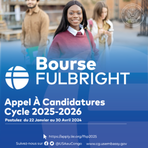 En savoir plus et Postuler : https://cg.usembassy.gov/fr/appel-a-candidatures-pour-la-bourse-fulbright-cycle-2025-2026/